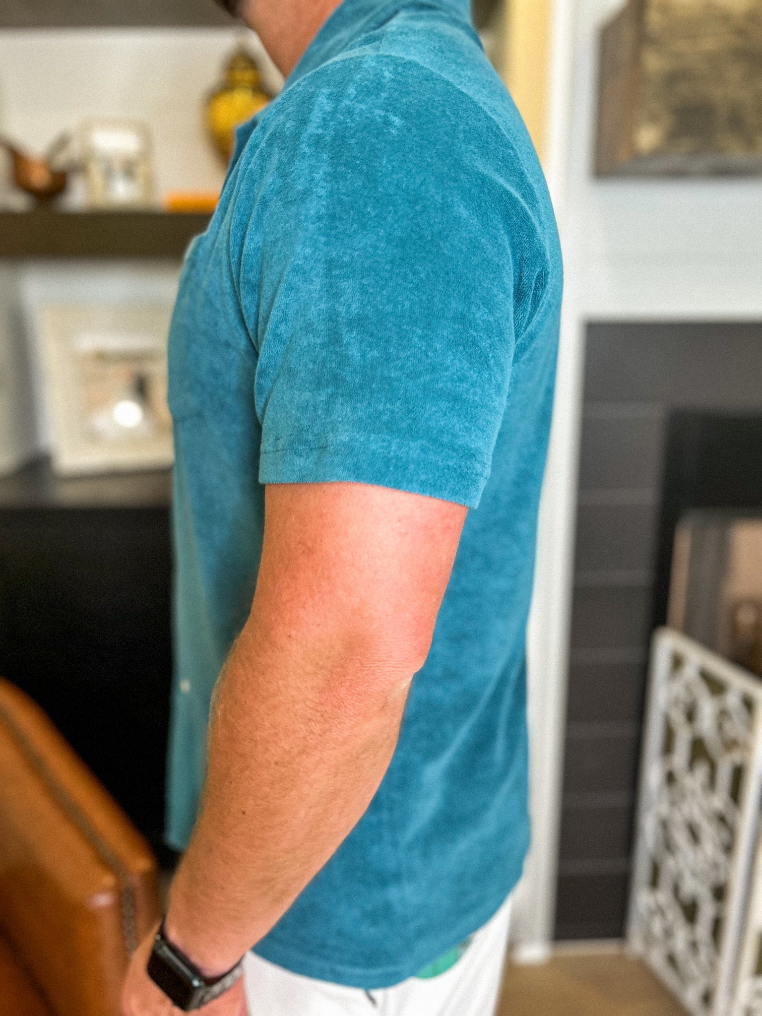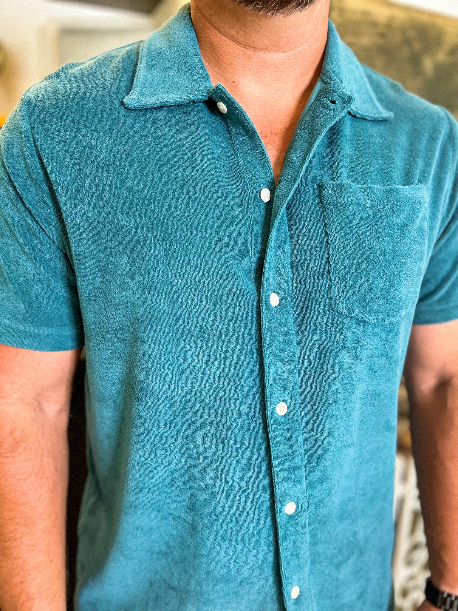 Elevate your summer wardrobe with our Terrycloth Button Down in Hydro. Constructed from a luxurious terrycloth fabric, this shirt keeps you cool and stylish. Perfect for any summer occasion, it's the must-have piece for the stylish and sophisticated individual. Don't sacrifice comfort for style, embrace both with our Hydro shirt.