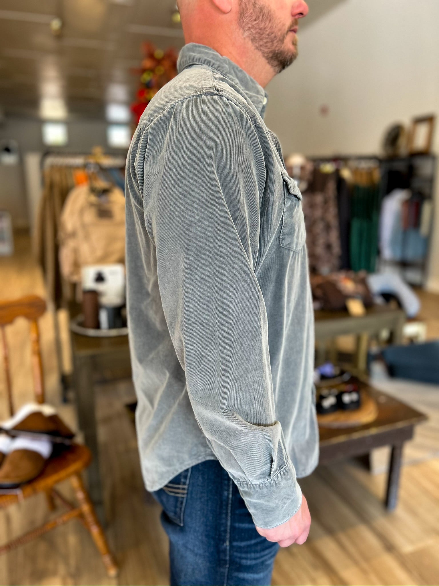 Expertly crafted with a soft corduroy material, this Jackson Cord Western Buttondown Shirt in Charcoal offers both style and comfort. The lightweight design is perfect for any season, while the pearl snap and button down features add a touch of sophistication. Upgrade your wardrobe with this versatile and timeless piece.
