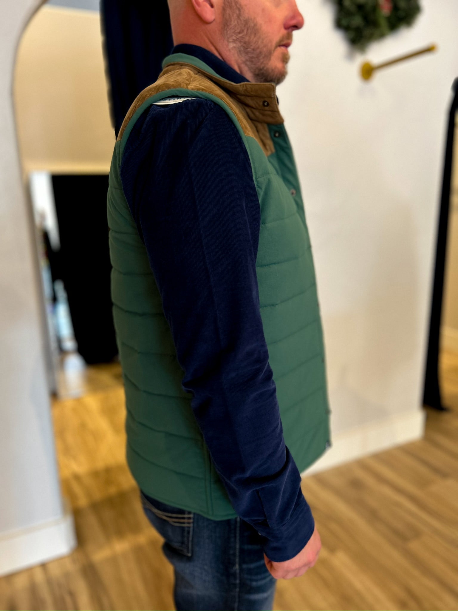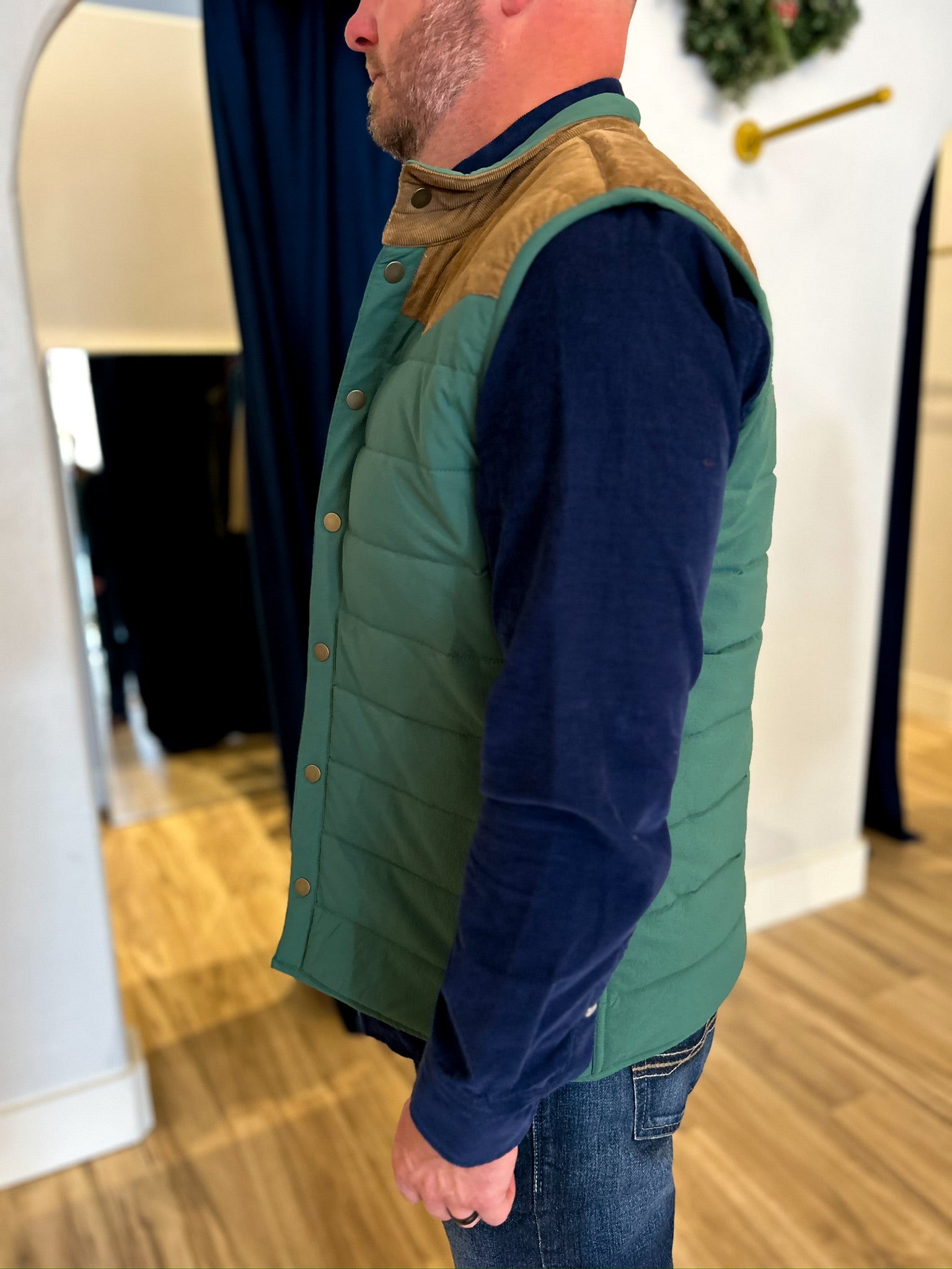 Get ready for cooler weather with the Jackson Vest in Hunter Green. Made from high quality corduroy, this button down vest is both stylish and warm. Perfect for layering, this vest is a must-have for your fall and winter wardrobe.